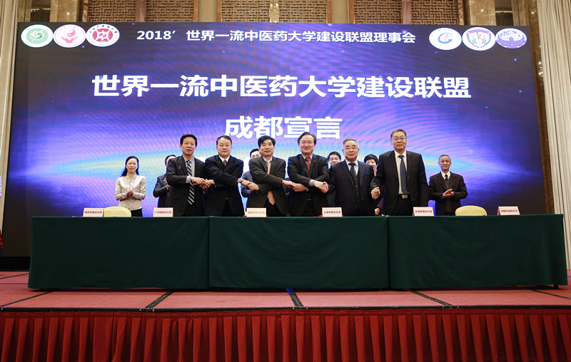 会上审议通过并由联盟成员单位共同签署了《世界一流中医药大学建设联盟成都宣言》。《成都宣言》指出,为把中医药学继承好、发展好、利用好,加快中国特色、世界一流中医药大学建设步伐,发起组建世界一流中医药大学建设联盟,以共商、共建、共享为宗旨,致力于培育中医药英才,致力于发展中医药学术,致力于贡献中医药服务,致力于传承中医药文化,强化自身建设,强化责任担当,共同探索符合中医药特色和规律的一流大学与一流学科建设之路,构建独具中国特色的医学与健康服务人才培养体系,勇做先行者、探路者,为健康中国、文化强国建设贡献中医药力量,为中国中医药高等教育改革发展积累经验、提供示范,努力汇聚起振兴中医药事业的磅礴力量!