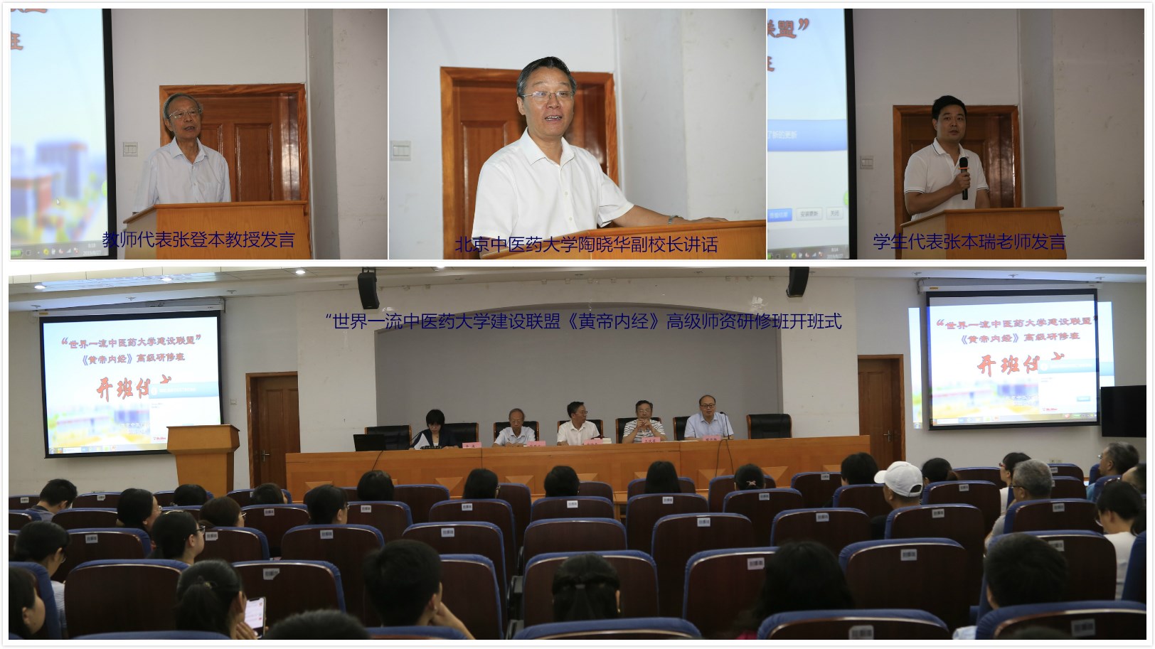 在开班典礼上,来自陕西中医药大学的张登本教授和上海中医药大学张本瑞老师分别作为教师代表和学生代表发言,表达对年轻一代继承国粹、创新新知、争当先进的希望以及青年教师认真学好经典理论的决心。北京中医药大学副校长陶晓华教授作开班动员并提出培训要求,指出中医经典是中医学术的根本,在中医药迎来天时、地利、人和的大好时机下,作为高校教师更应扎实学好经典理论、不断学习、返本开新,并高度评价了此次培训班导师深厚的学识、精湛的医术、高尚的医德,堪称广大中医药同仁学习的楷模,希望通过此次的学习,充分消化吸收各位中医大家的学术思想和临床经验,学有所得、学有所获。